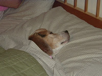 We purchased some traps. We placed them where we thought the mouse was frequenting. Then we came to the conclusion that the mouse really liked gnawing at our kitchen brushes (the type you use for applying butter, etc.). He began building a small nest in a corner on our counter. We placed a trap there. In the early hours of Monday morning, he was caught. In case you’re wondering, CJ the beagle never made a move.
