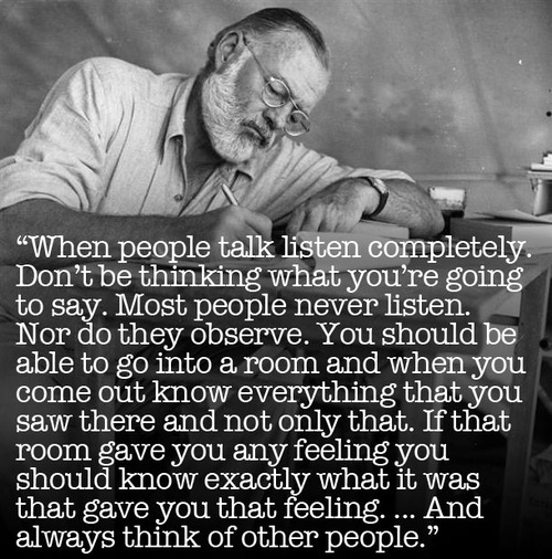 We really should listen to people……so says Ernest Hemingway.